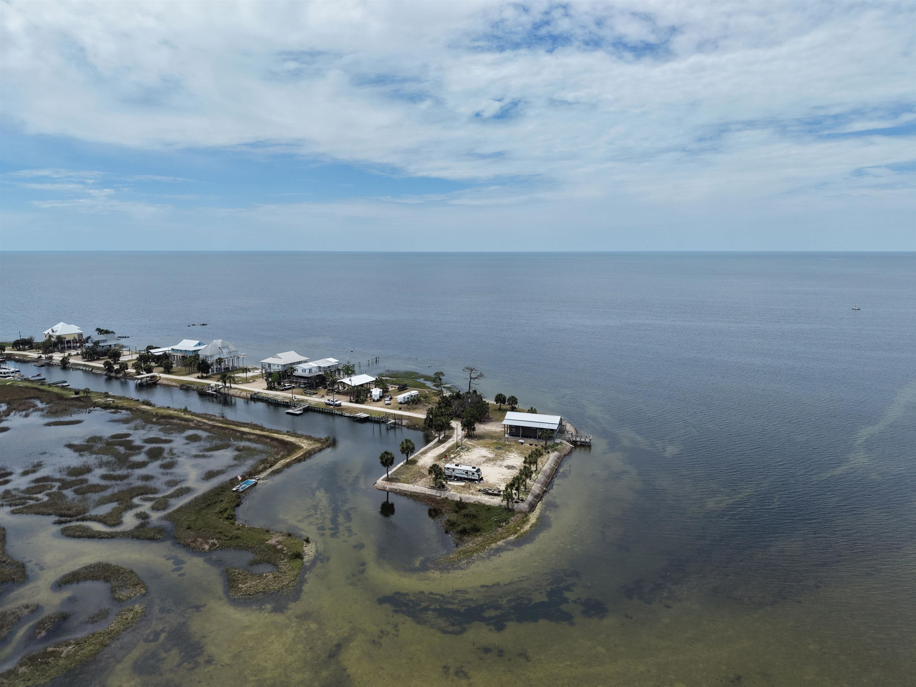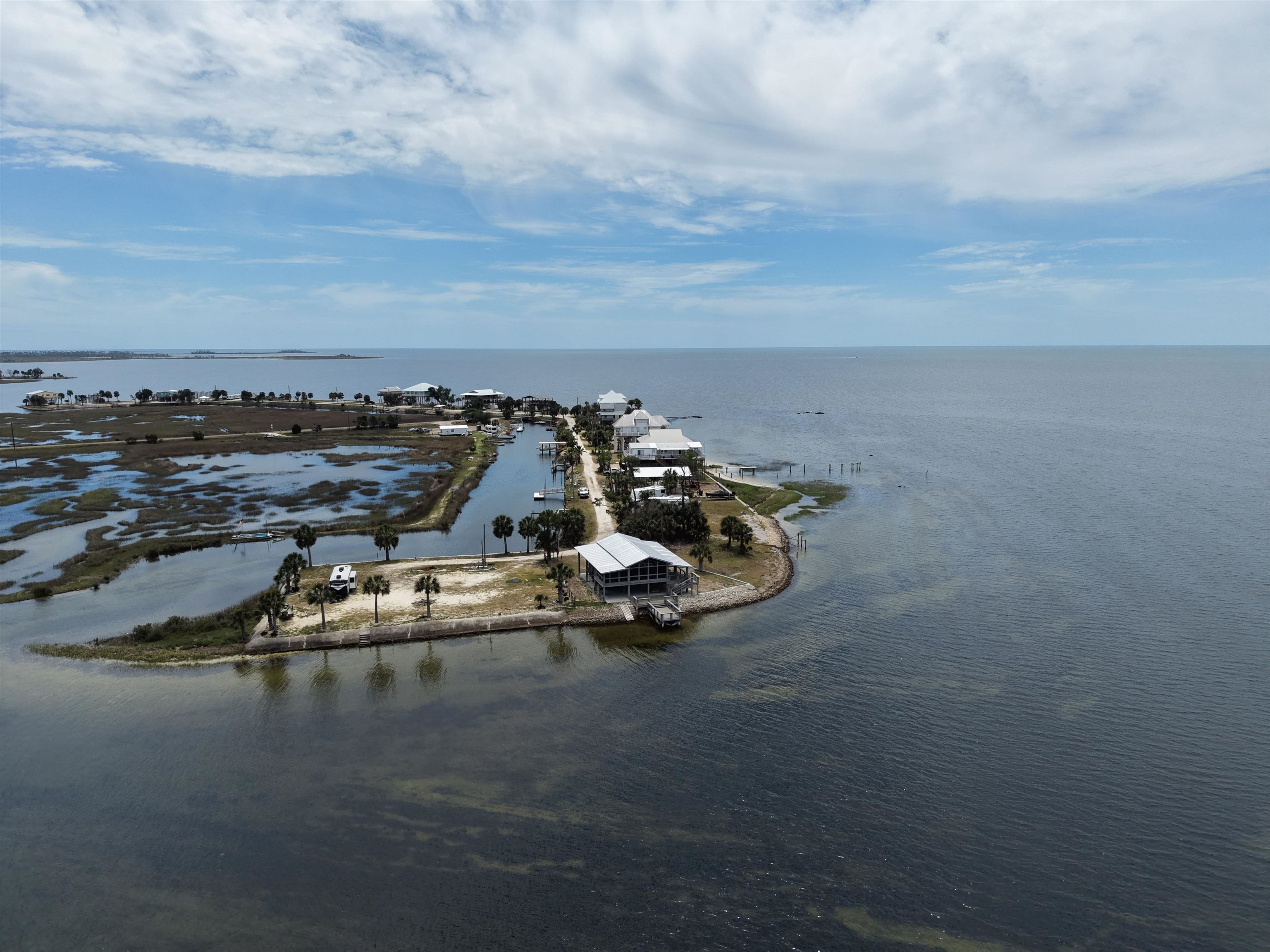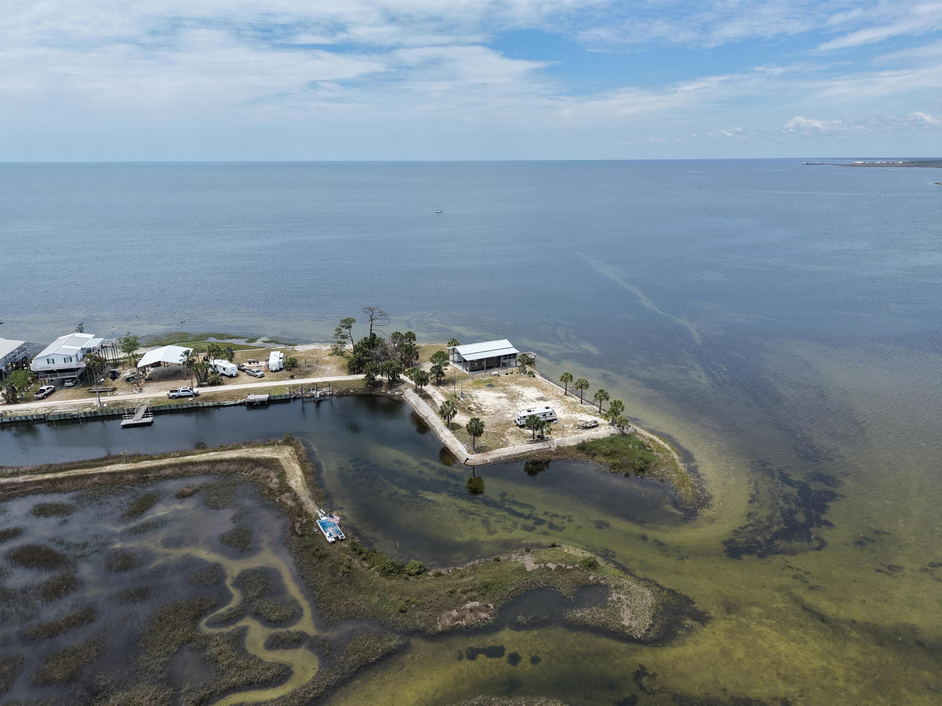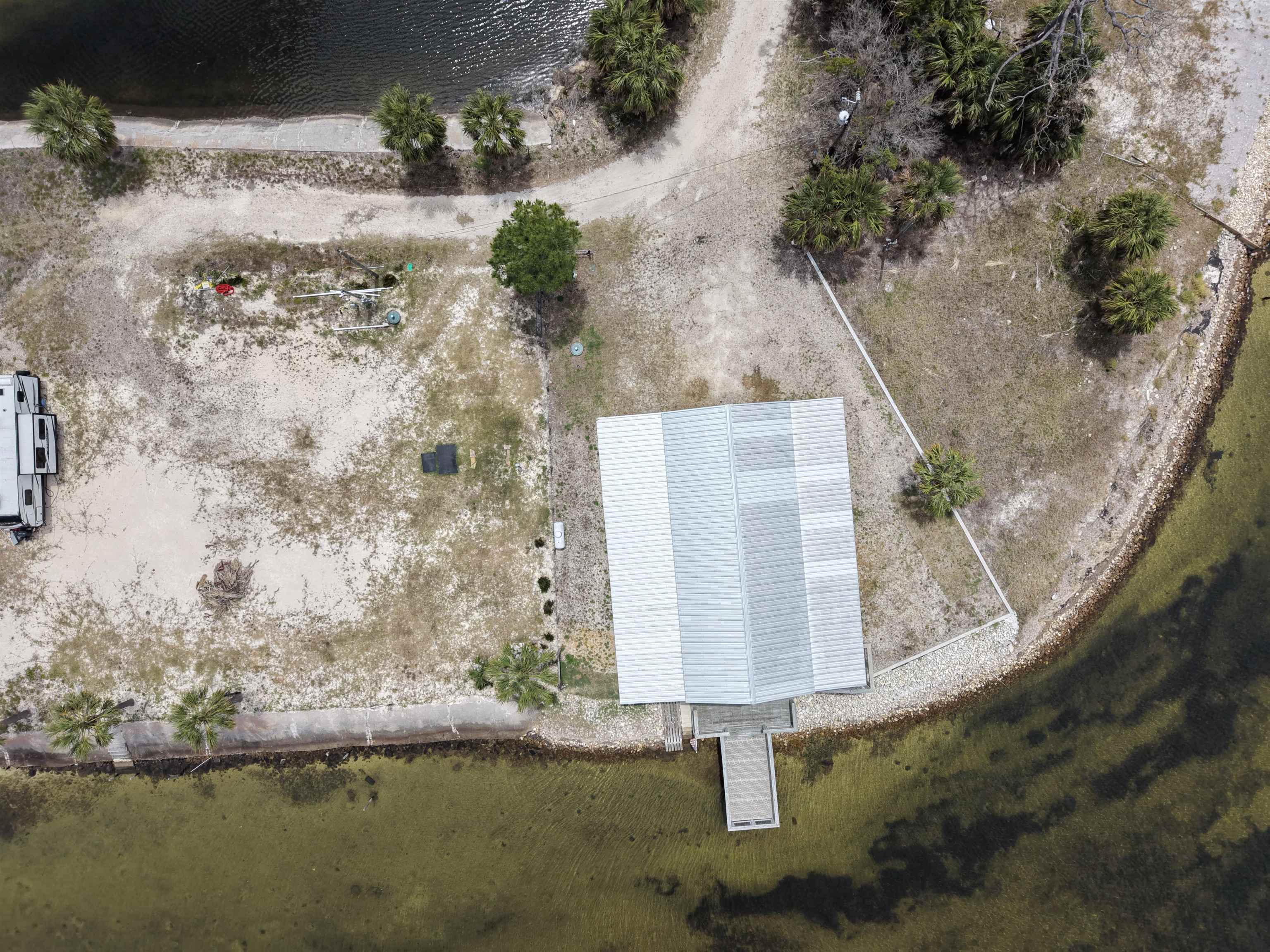 Rare opportunity to own a 0.18-acre waterfront lot in the highly desirable Dark Island, FL community with canal access. This property is fully equipped and ready for immediate use or future development. Features include a state-of-the-art pole barn, ideal for storage and versatility, along with a custom dock suitable for flats boats and airboats with convenient canal and waterfront access. Enjoy outdoor living with multi-level decks integrated into the pole barn, designed for entertaining and relaxation. The property also includes a fully furnished loft-style 2-bedroom, 1-bath tiny home, perfect for a weekend retreat, rental income, or full-time living. Utilities are already in place with Taylor Coastal water and sewer connected, along with a 200-amp electrical service. This turnkey waterfront property offers a unique combination of functionality, recreation, and coastal lifestyle.