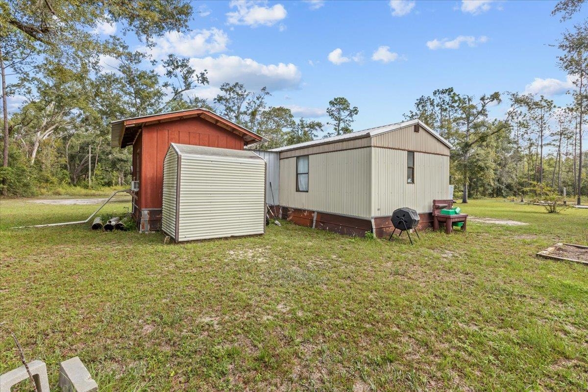 Tucked away down a quiet country road, this peaceful property offers the perfect mix of privacy and charm. Surrounded by mature trees, open space, and frequent visits from local wildlife, this cozy 3-bedroom, 2-bath home sits on 3.34 secluded acres with plenty of room to roam. Inside, youll find a warm and inviting layout. The third bedroom doubles as a flex space with built-in shelving ideal for a home office, craft room, or guest area. Outside features include a shed, workshop area, and RV hookup already equipped with power and septic. The property also includes a beautiful variety of fruit trees producing persimmon, pear, lemon, grapefruit, grapes, and two peach trees, plus Japanese plum and mulberry trees that are beginning to mature. Located just 25 minutes from the Gulf of Mexico, youll enjoy easy access to some of the best fishing and scalloping in North Florida, all while soaking up the quiet charm of country living.