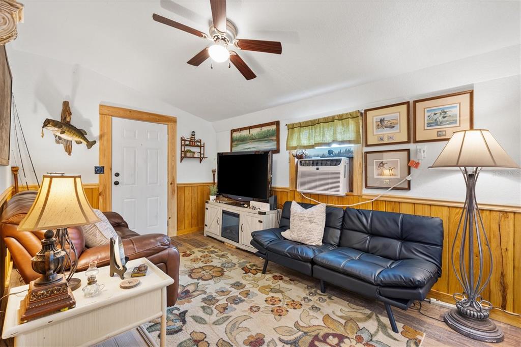 Tucked just minutes from the boat launch, in the heart of Floridas Chain of Lakes, just off Haynes Creek, sits a charming retreat that feels made for slowing down and soaking it all in. Whether you're arriving with a fishing pole, a kayak, or just a good book, this completely remodeled 2-bedroom, 2-bathroom home welcomes you with open arms.Step inside to discover 720 square feet of thoughtfully updated living spaceevery detail refreshed, from the new roof overhead to the new plumbing beneath your feet. The layout is cozy yet functional, ideal for a first-time homeowner, a snowbird seeking seasonal serenity, or someone ready to simplify without sacrificing comfort.Outside, the large lot offers room to breathe, play, or park your RVyes, there are RV hookups ready to go. A separate garage gives you space for lake toys, tools, or even a workshop. And the back porch? Its your front-row seat to quiet mornings and golden hour reflections.But what truly sets this home apart is its location. Surrounded by water, wildlife, and wonder, you're just minutes from great diningwhether youre cruising in by boat or driving in from town. Its a place where weekends feel like vacations and every day holds the promise of adventure.This isnt just a house. Its a gateway to the lifestyle youve been dreaming of.Contact today to schedule your private showing.Buyer to perform their own due diligence. All measurements and property details should be independently verified.