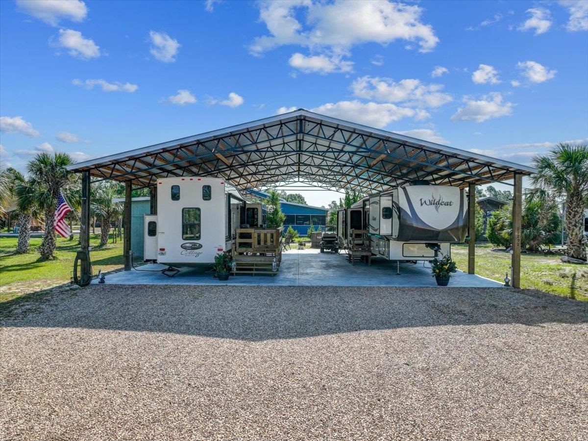 *Included in price 2019 Hathaway edition Cedar Creek 40 with upstairs has 3 slides king size bed walk-in shower, two tvs electric fireplace etc.* Ready for your next adventure? Cedar Island, a golf cart-friendly community renowned for its outstanding fishing opportunities, is calling your name! Whether you're into flats fishing for big reds and trout, scalloping, or even deep-sea fishing, youre in the right place. Located just two miles from Keaton Beach's public deep water canal, launching your offshore boat will always be a breeze. Additionally, Dark Island's public boat ramp is less than a mile away, offering even more convenience. For those who enjoy hunting, you'll find several management hunting clubs in the area. This property is not only a haven for outdoor enthusiasts but also presents a fantastic opportunity as a year-round income-producing asset. It features 200 amp service, three RV hookups, and a newly built 50x60 pole barn with a level two classification to withstand 165 mph winds. The barn is equipped with LED lights and includes a 12x20 outdoor laundry room. There's also a deck for your RV. Dont miss out on this perfect blend of adventure and potential income!