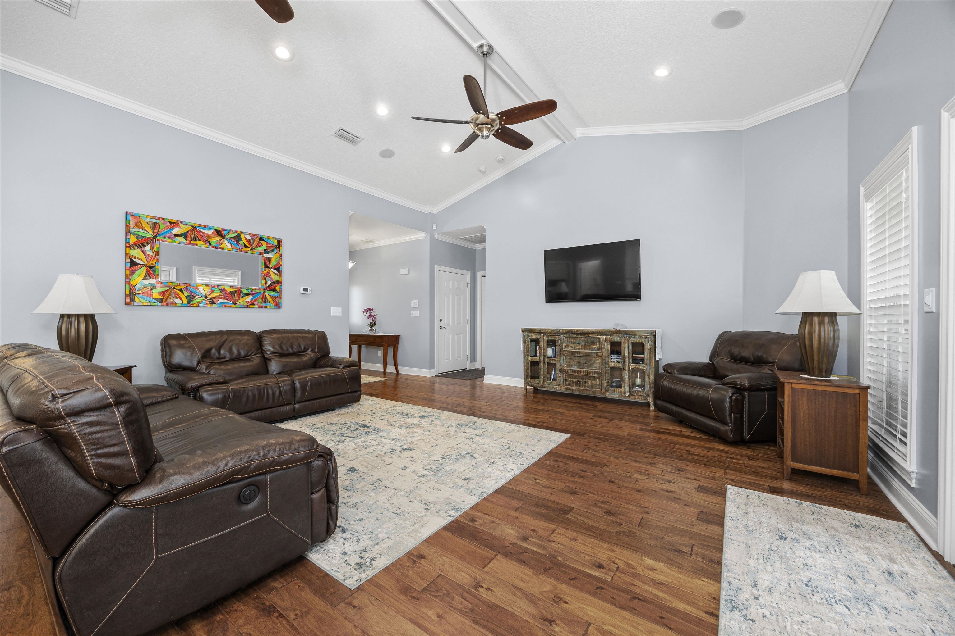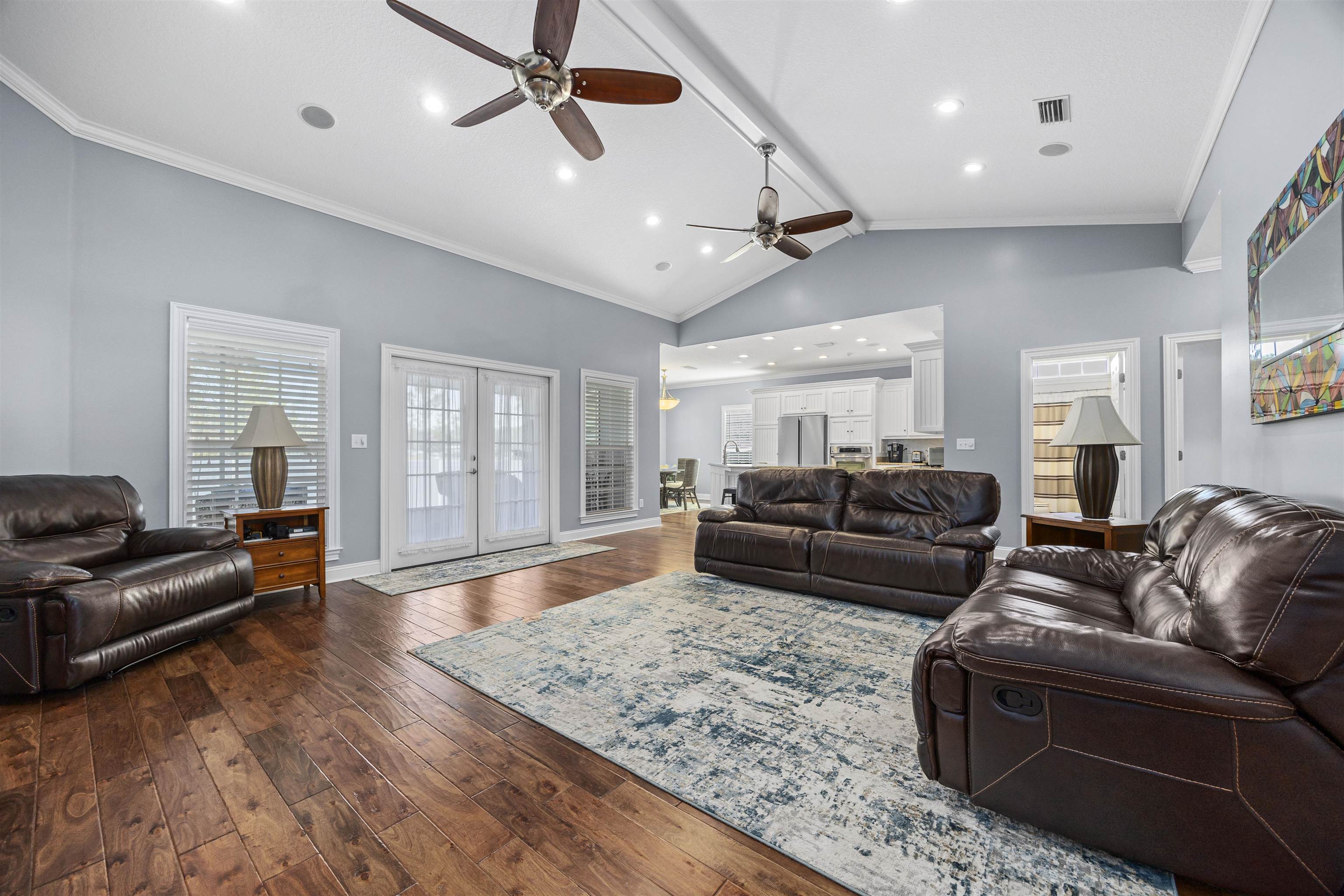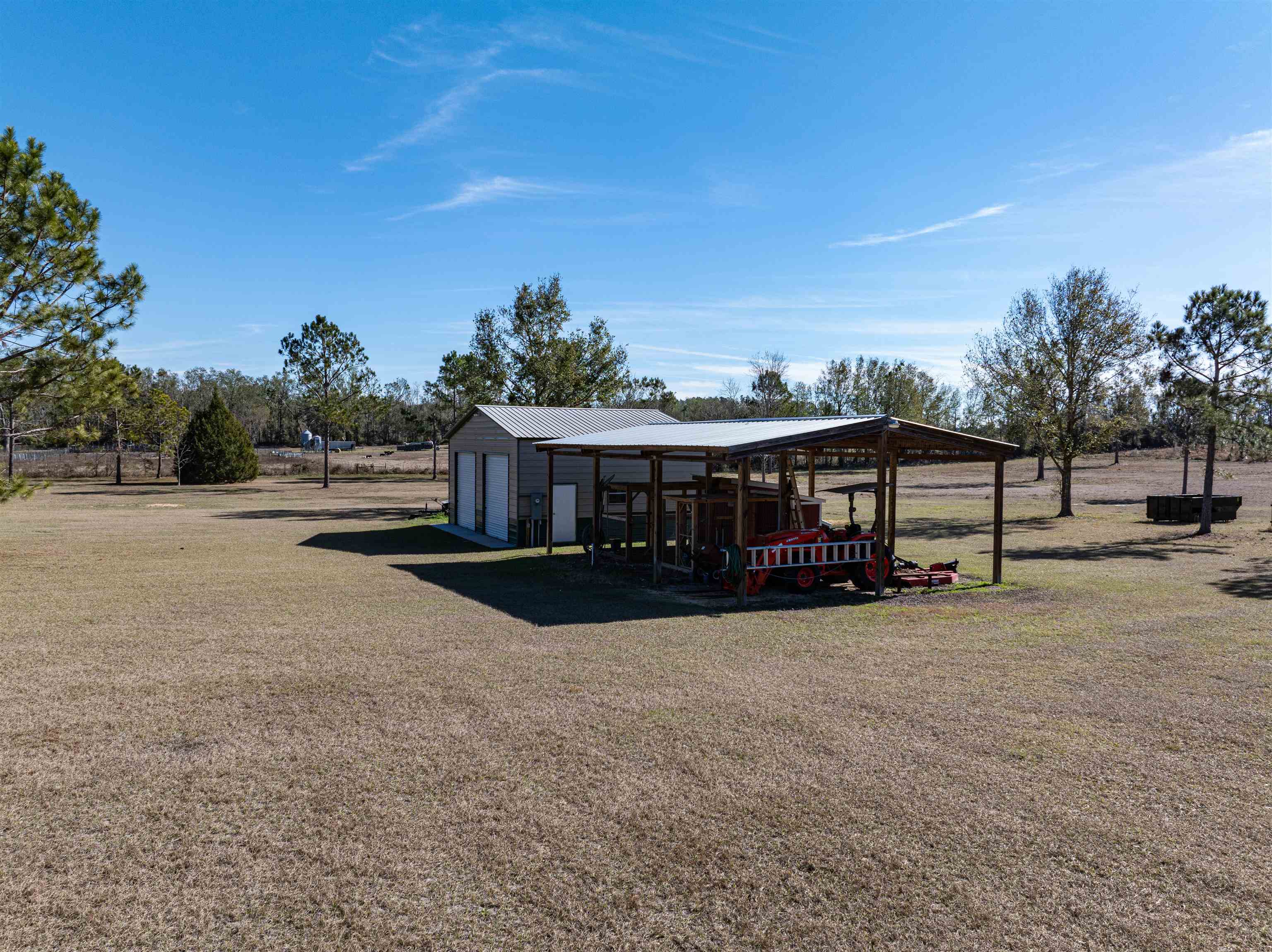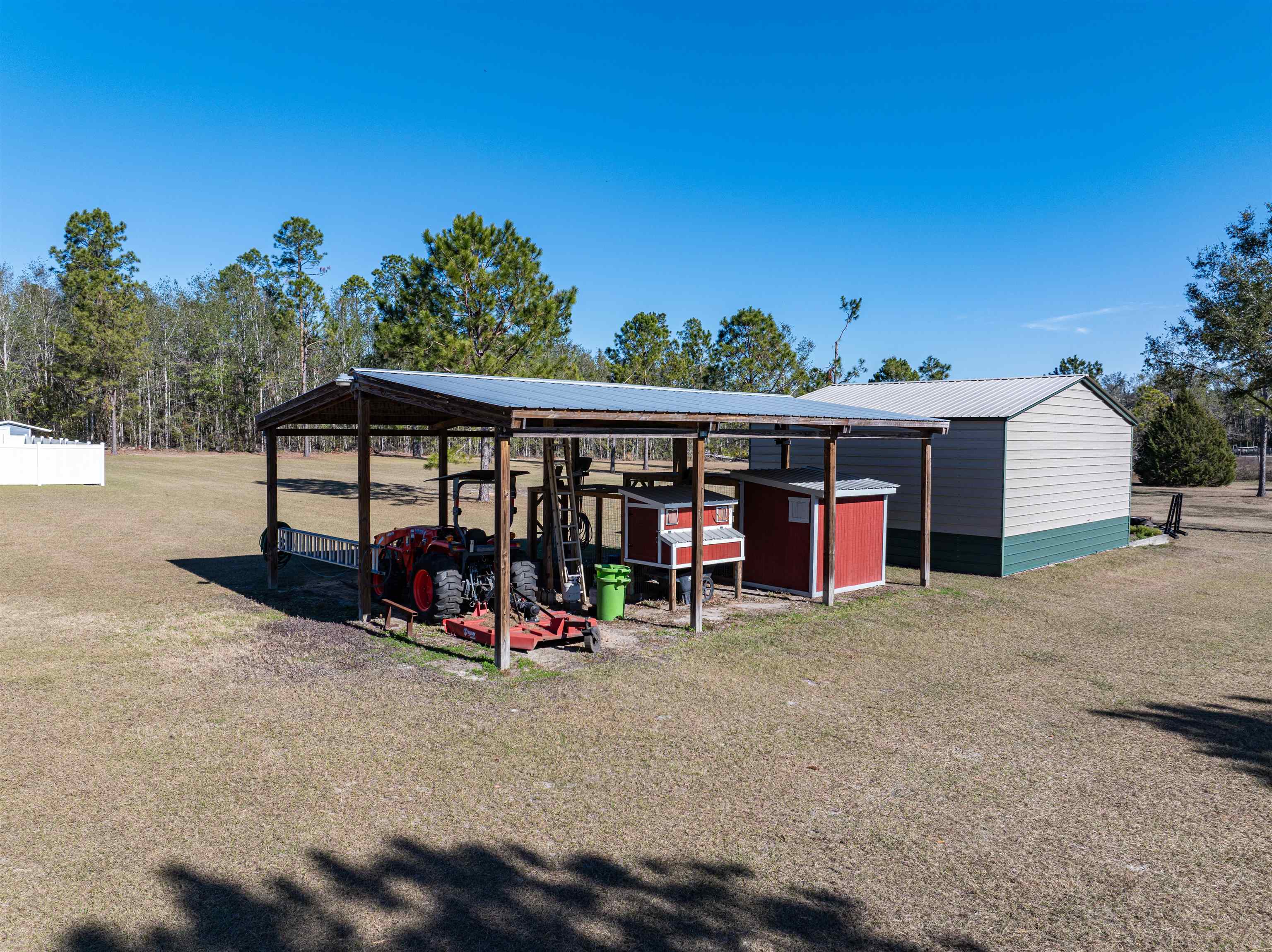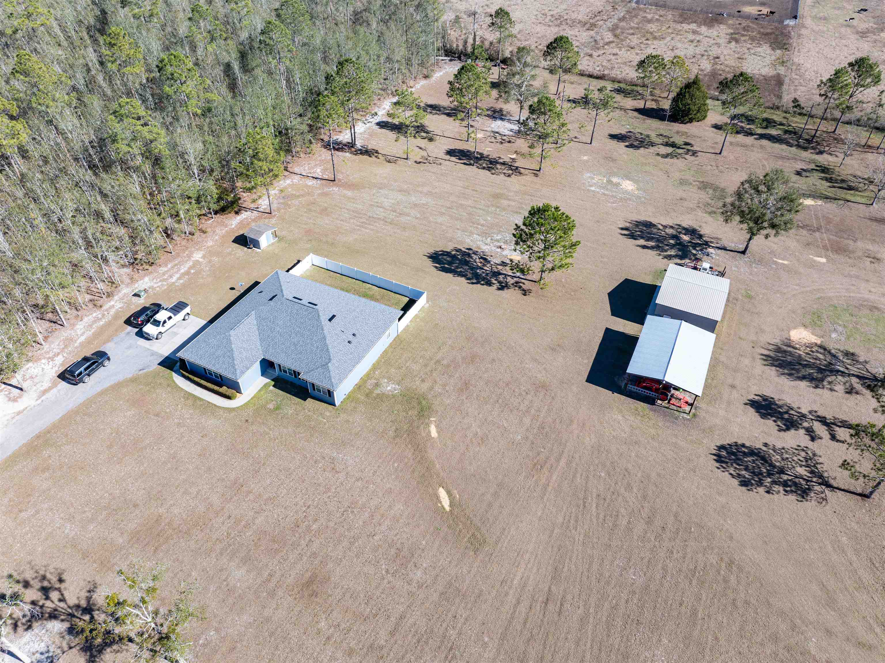 Welcome to this stunning 15-acre property, offering the perfect blend of peaceful countryside living and close proximity to town. This meticulously maintained home features an open floor plan, ideal for both relaxing and entertaining. The spacious living areas are highlighted by beautiful hardwood floors, while the bathrooms are elegantly appointed with luxurious tile finishes and stunning granite countertops. The kitchen is a chef's dream, complete with stainless steel appliances, sleek granite countertops, and custom cabinetry offering both style and functionality. There are two of three carpeted bedrooms with the primary bedroom having an expansive space for a sitting area to provide a cozy retreat, ensuring comfort throughout the year. To enjoy our frequently pleasant year-round temperatures, this home offers a well-appointed screened in porch with tile floors outside of the family room. Additionally, a separate laundry room provides added convenience and organization, and an enclosed garage offers ample space for your vehicles and storage needs. For added comfort, a water softener system is included providing high quality water throughout the home. For peace of mind, the home is equipped with a transfer switch, allowing for easy access to generator power during outages, ensuring you're never left without power when you need it most. In addition to the main home, you'll find a 30' x 25' enclosed workshop equipped with its own separate power pole, perfect for your hobbies or projects. A large 24' x 36' pole barn is also included, offering plenty of space for equipment, storage, or additional activities. The property includes four parcels, providing ample space for outdoor activities, farming, gardening, or simply enjoying the expansive land. A section of the property is partially fenced for added privacy and security, while the planted pines enhance the natural beauty of the landscape. With all these exceptional features, peaceful setting, and its prime location close to town, this property is a true gem waiting to be discovered! Parcel IDs included are as follows: 22-1N-10-5695-004-001 22-1N-10-5695-004-000 22-1N-10-5695-004-002 22-1N-10-5695-004-01A