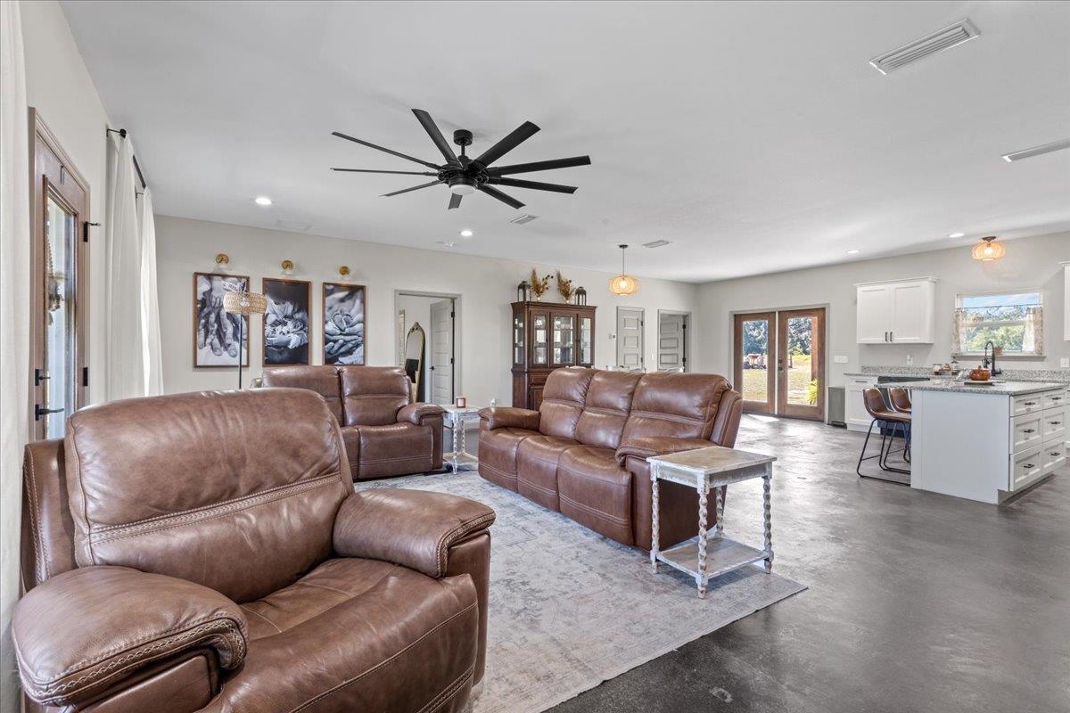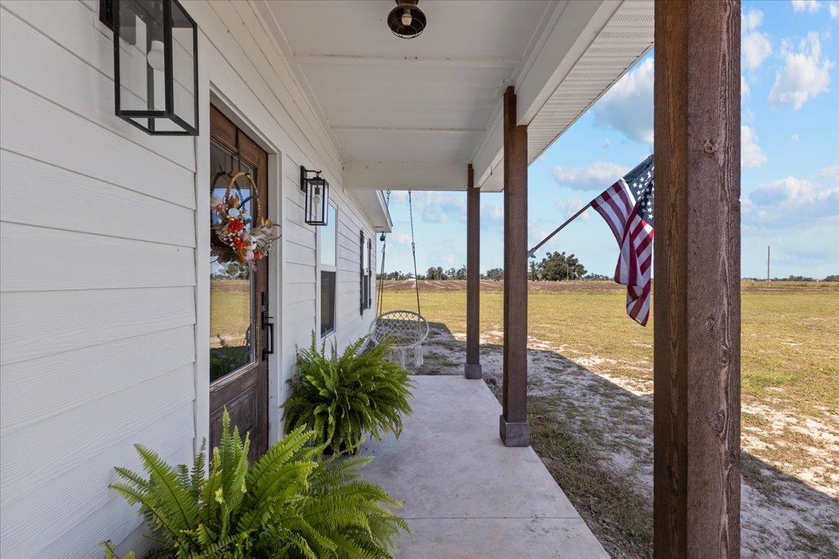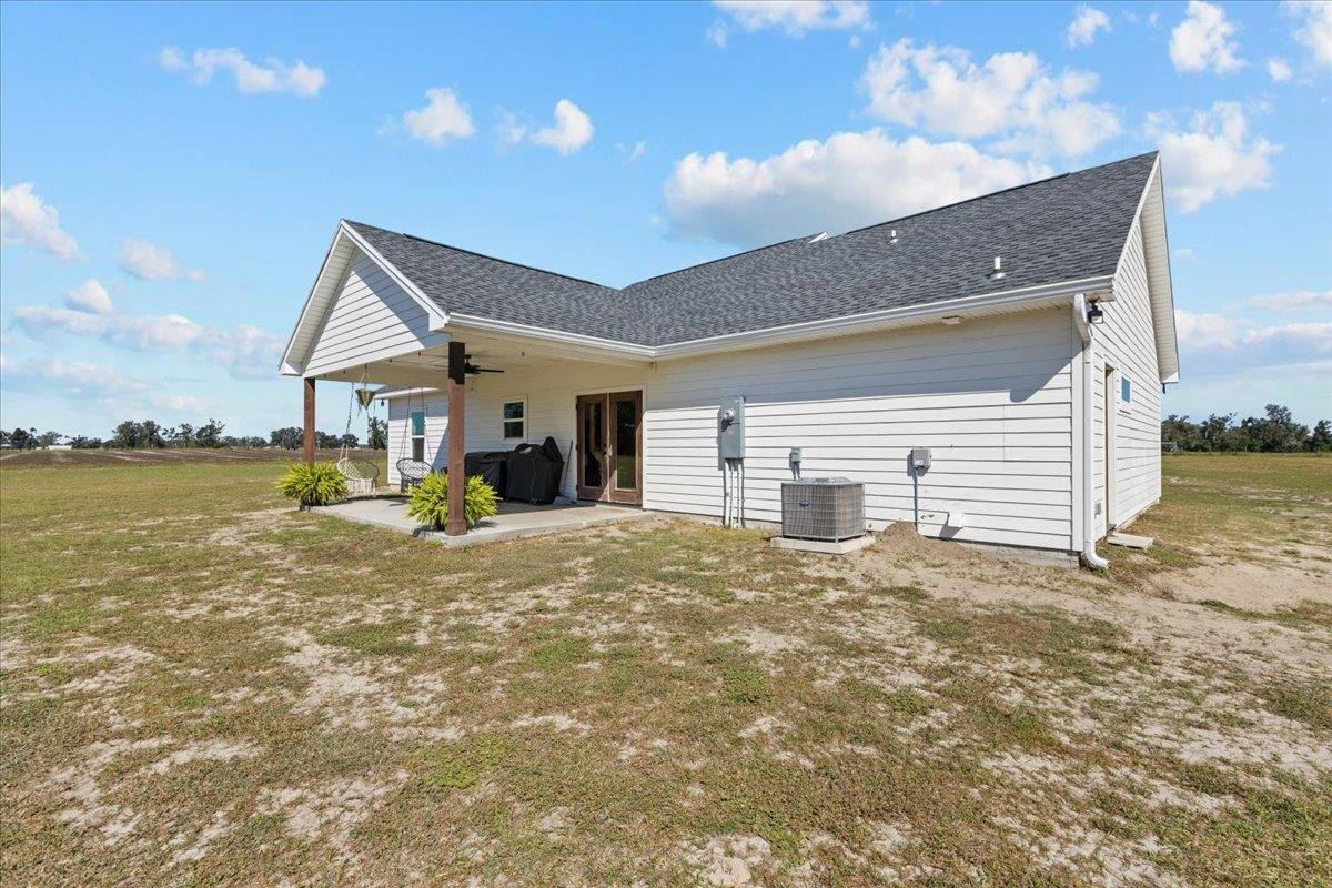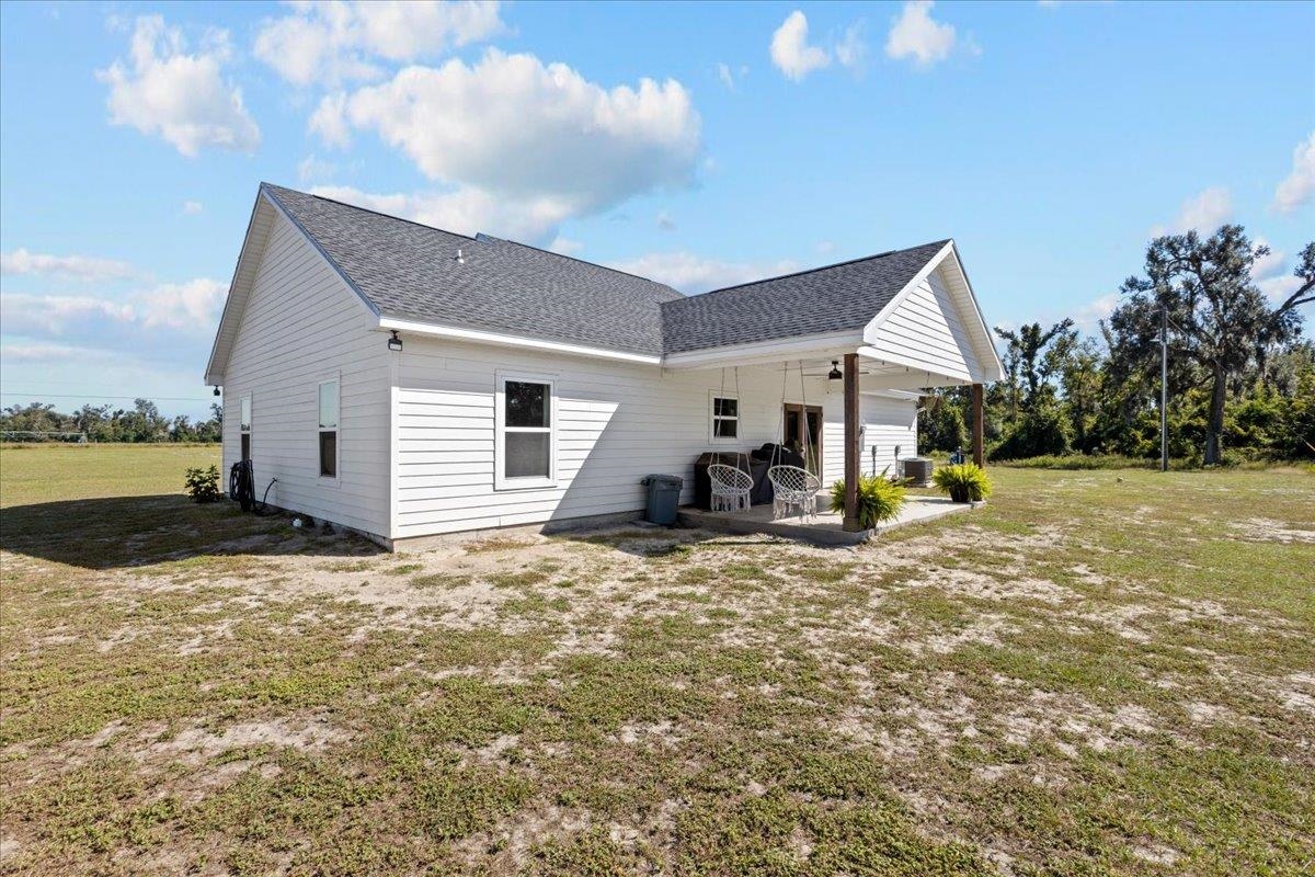 If wide open skies, fresh air, and quiet mornings sound like your kind of living, this 2023 farmhouse on 20.13 peaceful acres is the one for you. From the moment you pull down the drive, youre greeted with nothing but panoramic farm views and the peaceful sound of birds and wind through the fields. Step inside and youll feel right at home. The open floor plan gives plenty of space for family gatherings or cozy nights in. The kitchen was made for the heart of the home, featuring granite countertops, a walk-in pantry, and backyard views right over the sink. Youll be baking sourdough and watching deer in the pasture before you know it. The primary suite is tucked away for privacy, offering a large walk-in closet and a beautiful bathroom with a modern tiled shower and double vanity. On the other side of the home, youll find two spacious bedrooms with big closets and a second bathroom with a tub/shower combo, perfect for guests or kids. Out back, theres a covered patio thats just begging for morning coffee, rocking chairs, and evenings watching the sun dip behind the trees. Located in Mayo, Florida, with a top-rated school, this home gives you that simple, peaceful country lifestyle with room to roam, space to grow, and views that never get old.