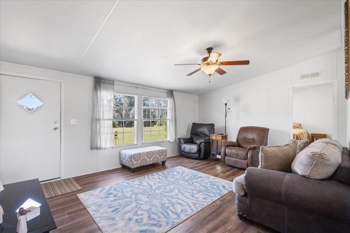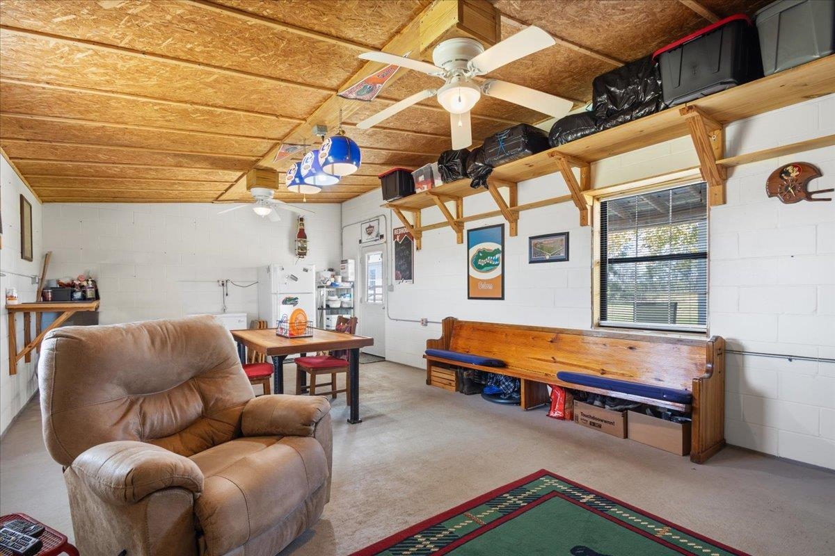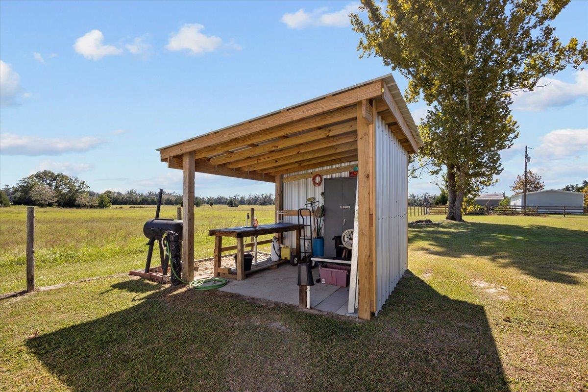 Well-Maintained Home on 1 Acre with Impressive Bonus Building! Situated on a spacious 1-acre established yard, this well-maintained 3-bedroom, 2-bathroom home offers a comfortable layout and thoughtful updates throughout. Inside, youll find new flooring, updated stainless steel appliances, and a metal roof installed 10 years ago. The roof features lifetime screws, heavier gauge metal, and panel board insulation added at the time of replacement-providing lasting durability and energy efficiency. The primary bedroom includes a walk-in closet, a cast iron tub, and a tiled shower, creating a relaxing private retreat. The two guest bedrooms also offer nicely sized closets, perfect for family, guests, or additional storage. A standout feature of this property is the large 16x28 all-block bonus building, ideal as a backyard getaway, office, hobby space, workshop, or recreation room. Built with exceptional strength and care, this structure sits on a reinforced slab with fiber and rebar, with 8-block-high poured solid walls reinforced with rebar every 32 inches and carried all the way to the top with a double bond beam. The front columns are poured solid with rebar, and hurricane strips are installed on all trusses. Its topped with a heavy-gauge metal roof with lifetime screws, insulation above the ceiling, and sealed block walls prior to painting. This solid construction was designed not only for everyday use, but also as a safe and secure space for the owners to stay during hurricanes-offering both versatility and peace of mind. This property blends modern updates, generous living space, and a high-quality additional structure, making it a rare find with endless possibilities.
