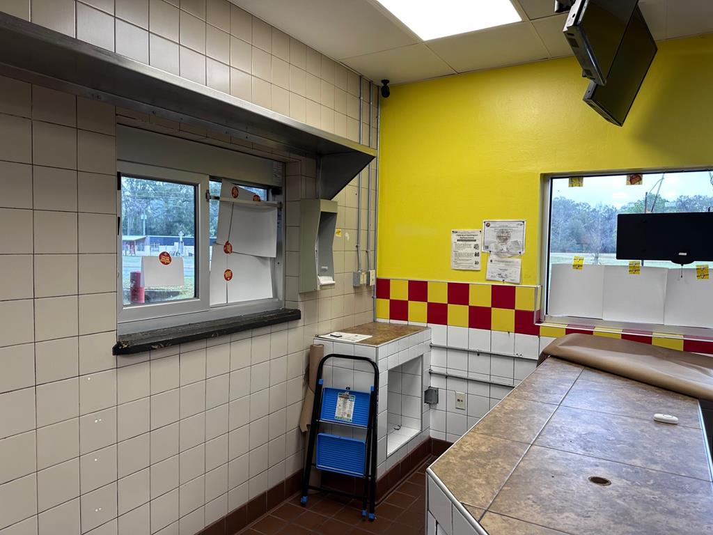 Prime restaurant opportunity in busy location! Seize this turnkey restaurant opportunity in the heart of Chiefland's bustling commercial district! This 1,882 sq. ft. restaurant building is well-equipped and ready for your vision, offering a eat-in area, a large kitchen and prep space, and a drive-thru order board with a service window. The property also includes a walk-in refrigerator, a grease trap, some hood equipment, and an additional storage shed for convenience. With over 180 feet of highway frontage, this location provides excellent visibility and high traffic exposure, making it a prime spot for a successful restaurant. The building features paved parking with ample space, exterior public restrooms for customers, and an interior employee restroom for staff convenience. Whether you're an experienced restaurateur or an entrepreneur ready to make your brick-and-mortar dream come true, this space offers what you need to get started. Don't miss this incredible opportunity to establish your restaurant in a thriving area. Schedule a showing today!