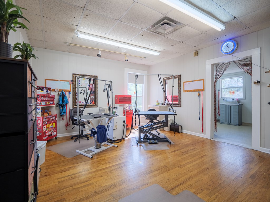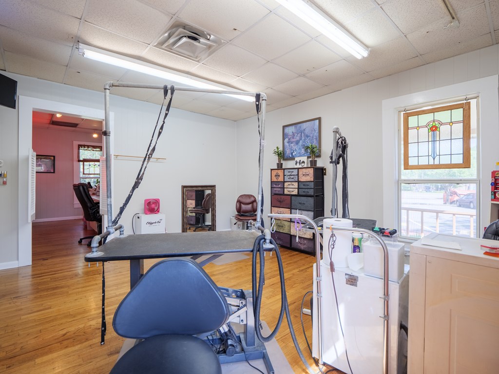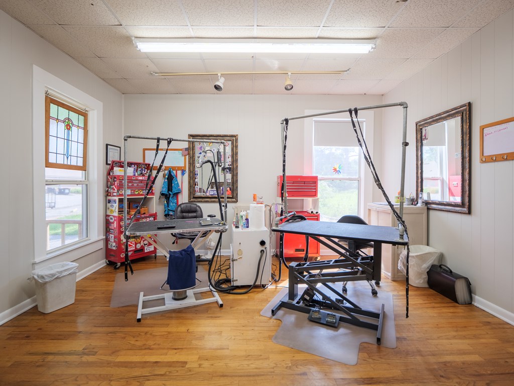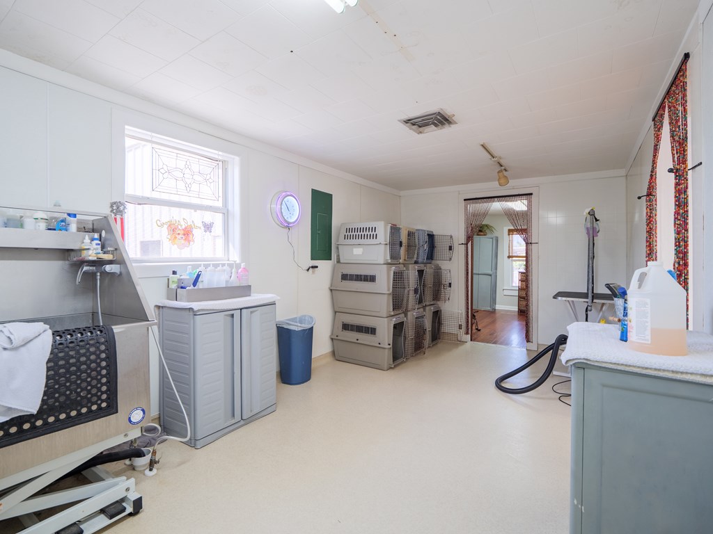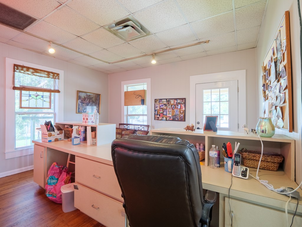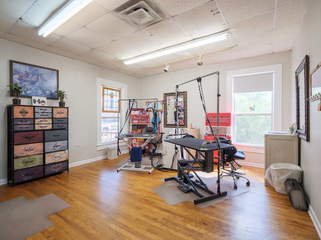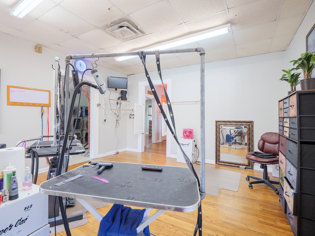 This versatile flex building is located in the heart of Valdosta, just off Baytree Road with excellent visibility from the main corridor. The property offers approximately 1,800 square feet of heated and cooled space along with 1,000 square feet of warehouse area, complete with two 12' roll-up doors for easy access. The main building includes a welcoming reception area with counter space, two spacious rooms, a breakroom, and two additional flex rooms that can adapt to various needs. Previously utilized as a pet grooming business, the space is equipped with a soundproof room for kennels, a small fenced-in yard, and a grooming areamaking it ideal for a similar operation, though easily convertible for other business types. The warehouse portion has its own entry and is well appointed with two private offices and a restroom, providing functionality and privacy. With its prime location, flexible layout, and blend of office, warehouse, and specialty space, this property is well-suited for a wide variety of buyers seeking a strategic spot to customize and grow their business.